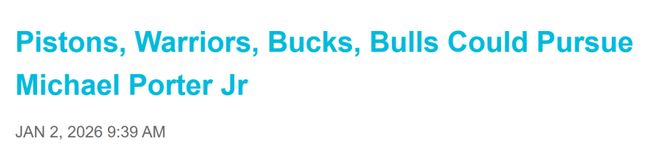 北京时间1月3日,据名记Fischer报道,篮网的小迈克尔-波特的交易价值已从负值回升至至少持平状态。底特律活塞、金州勇士、密尔沃基雄鹿和芝加哥公牛预计将成为他的追求者。